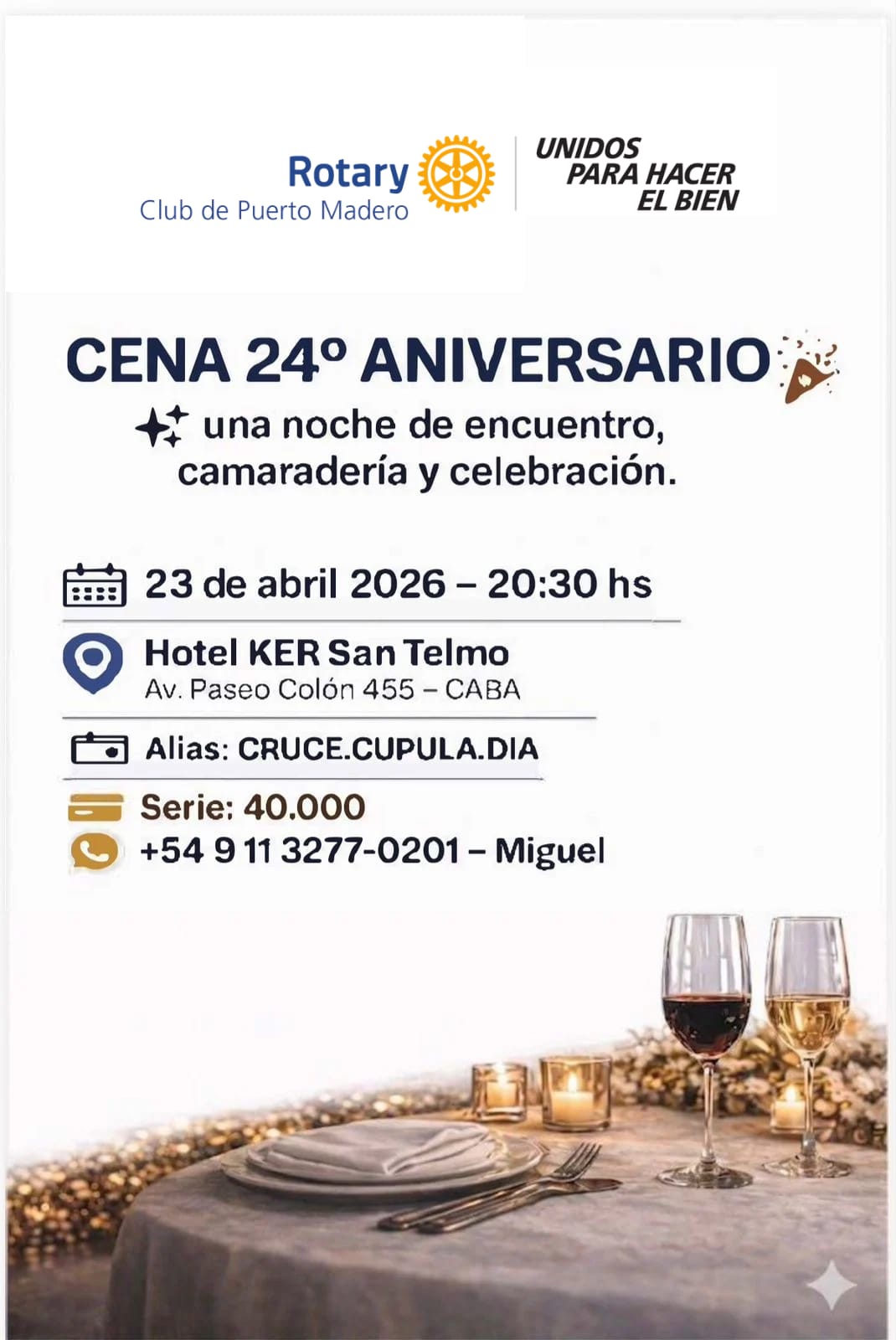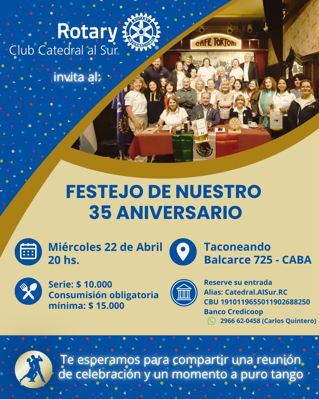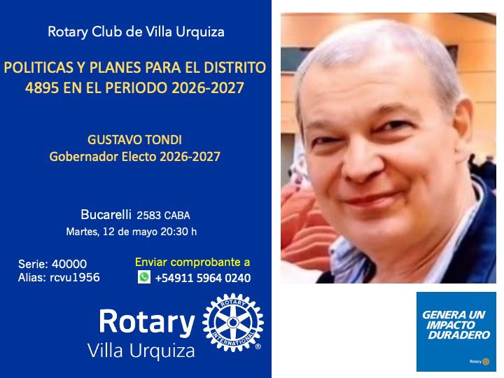 El Rotary Club La Veleta de Caballito se honra de invitar a Ud. a la visita oficial de la GD Sra. Susana Espósito. Un encuentro para celebrar el servicio y la amistad rotaria.