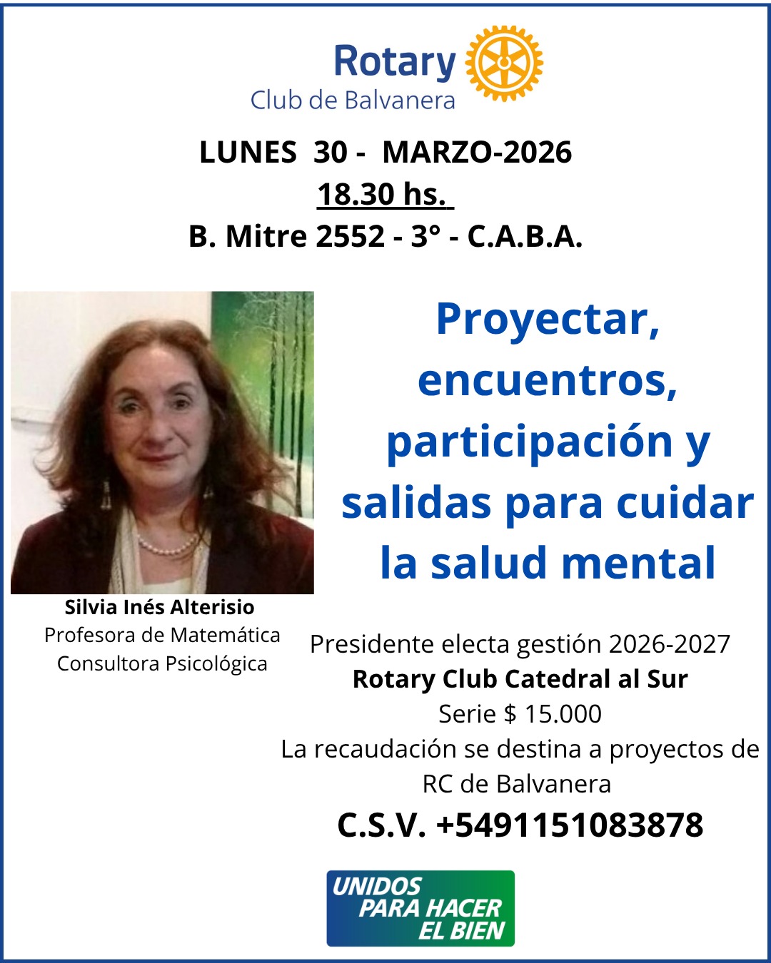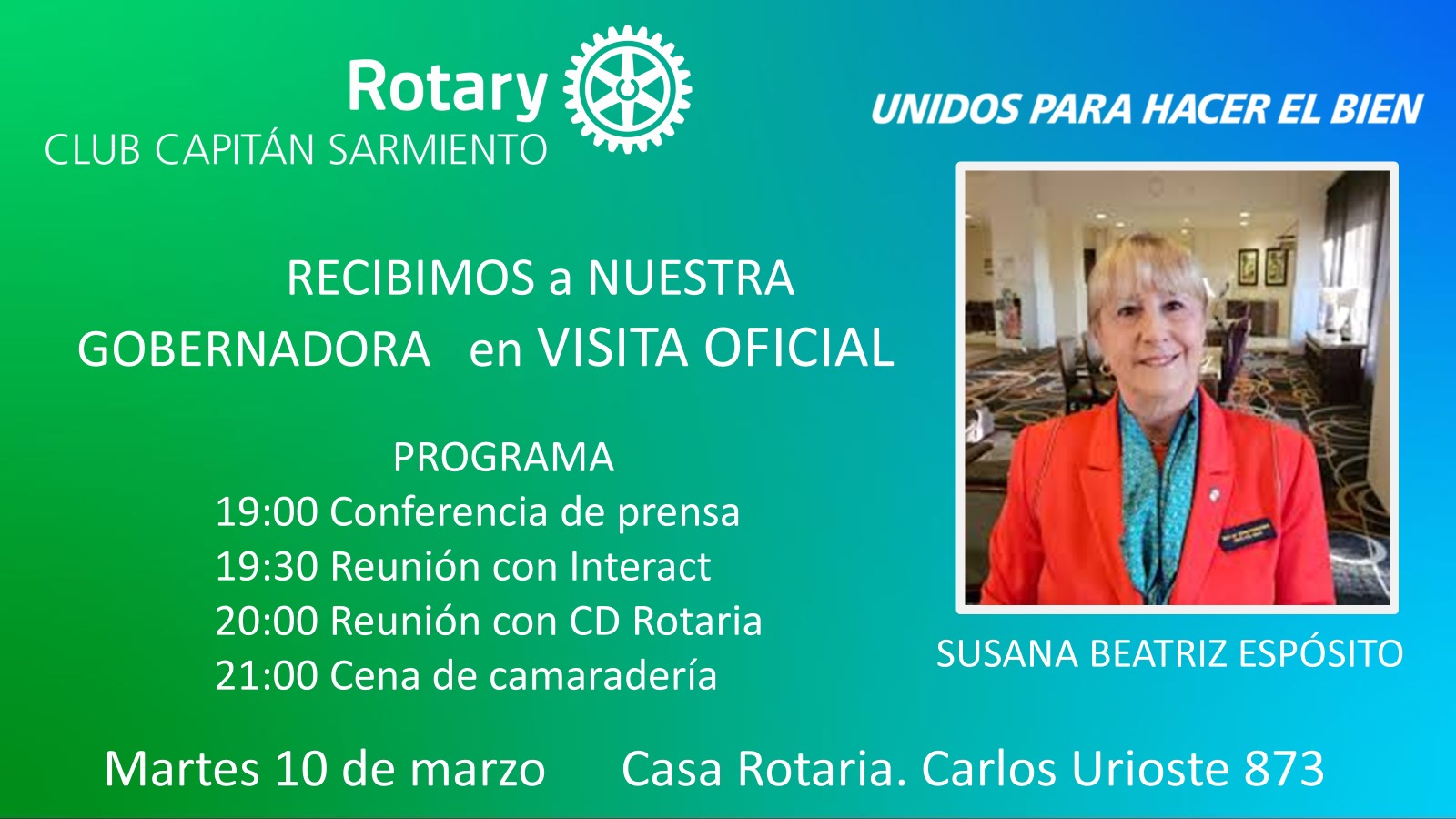 El Rotary Club La Veleta de Caballito se honra de invitar a Ud. a la visita oficial de la GD Sra. Susana Espósito. Un encuentro para celebrar el servicio y la amistad rotaria.