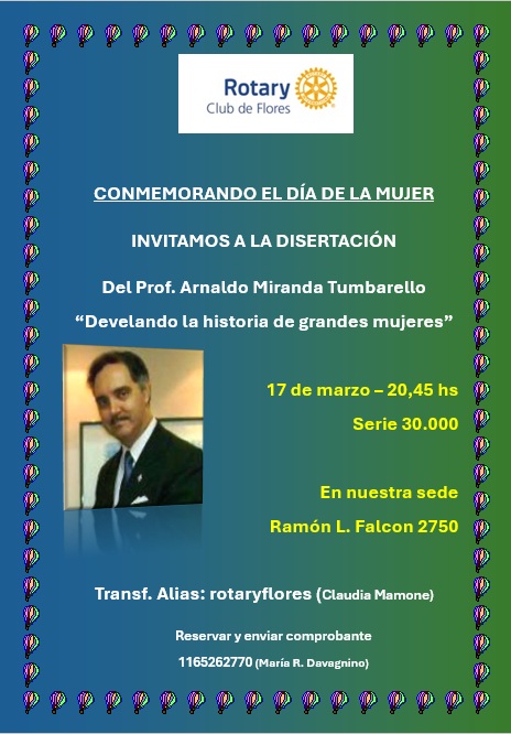 INVITAMOS A LA DISERTACIÓN Del Prof. Arnaldo Miranda Tumbarello "Develando la historia de grandes mujeres"