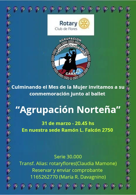 CIERRE DE INSCRIPCIÓN MIERCOLES 25.03.2026 SE CONFIRMA LA RESERVA CON EL PAGO DEL CUBIERTO