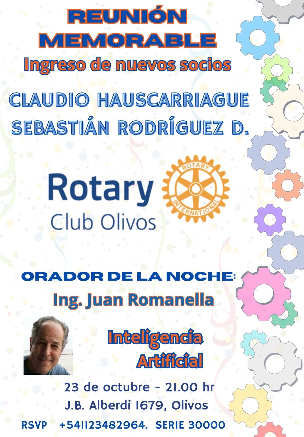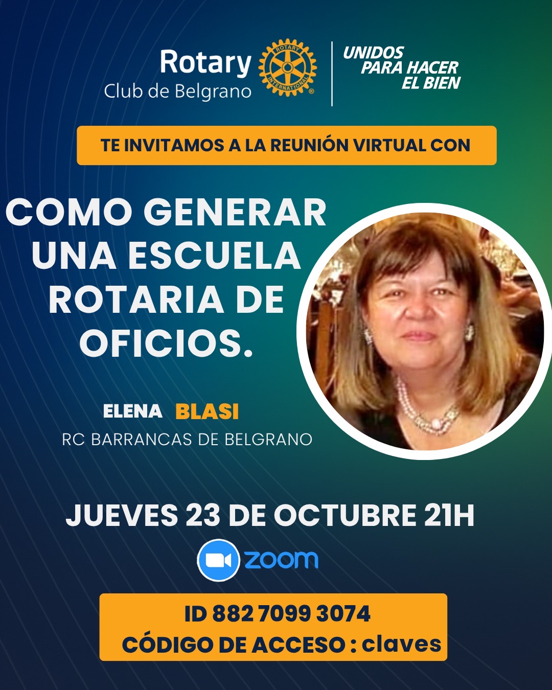 LUNES 6/10 19:00 REUNION DE JUNTA 20:45 TALLER ROTARIO LUNES 13/10 20:30 LIC. NELSON PEREZ ALON2O "LA EVOLUCION DE LA HUMANIDAD" LUNES 20/10 20:30 DIPLOMATICO GERMAN PROFFEN "MI EXPERENCIA COMO DIPLOMATICO" LUNES 27/10 20:30 REUNION INTERNA ROTARIA