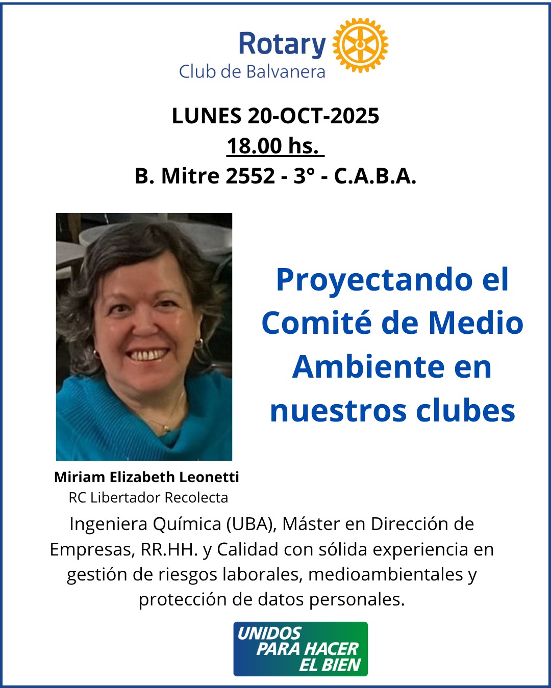 Miriam Elizabeth Leonetti RC Libertador Recolecta Ingeniera Química (UBA), Máster en Dirección de Empresas, RR.HH. y Calidad con sólida experiencia en gestión de riesgos laborales, medioambientales y protección de datos personales.
